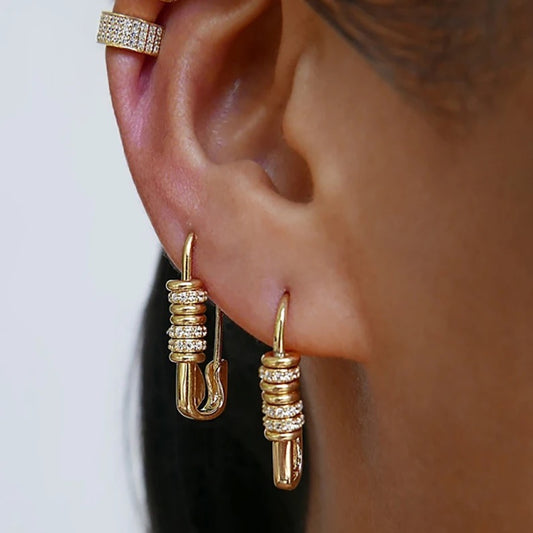 Stone Safety Pin Earring